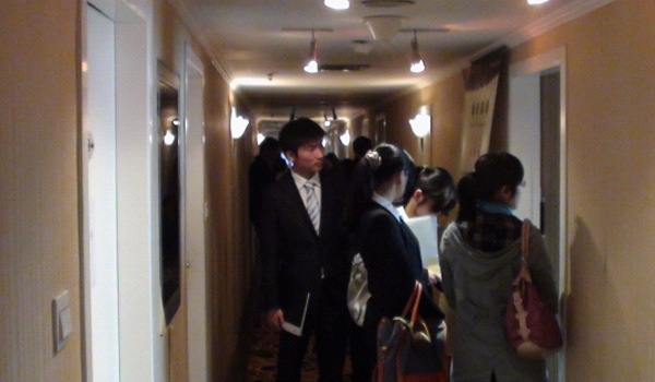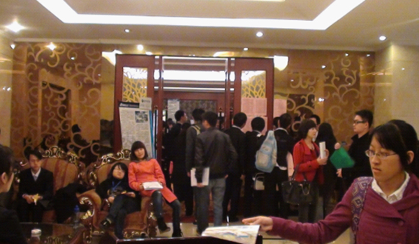 除了房間面試外,有些企業在酒店租用了會議室,一邊招聘一邊在進行著企業的宣講會,讓學生能夠更好更全面地了解企業的信息,并根據自己的意愿來選擇未來的就業單位。 |