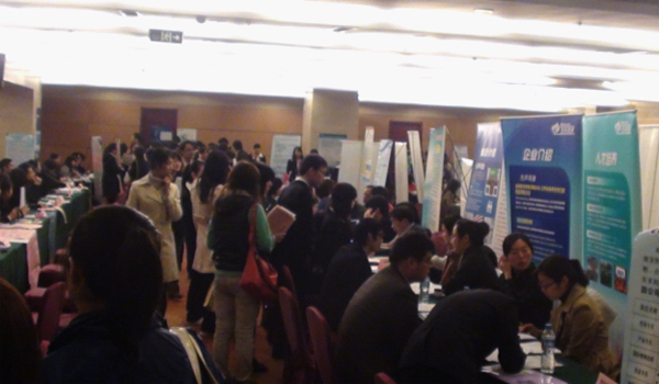 再來看看火熱的招聘會現場,一些學生都在排隊,等得很心急吧,究竟花落誰家呢?相信不少企業都招到了合適的人才吧。 |